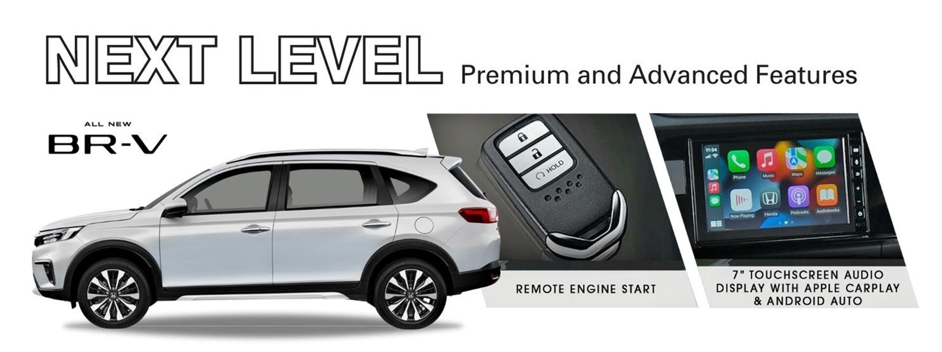 The cockpit area of the All-New Honda BR-V has been cleverly designed to emphasize functionality for the driver and passengers. This model not only has an improved exterior, but it also has a variety of technological amenities, including a 7-inch Advanced Touchscreen Display Audio with Apple CarPlay and Android Auto as well as Remote Engine Start, all of which offer convenience and accessibility.