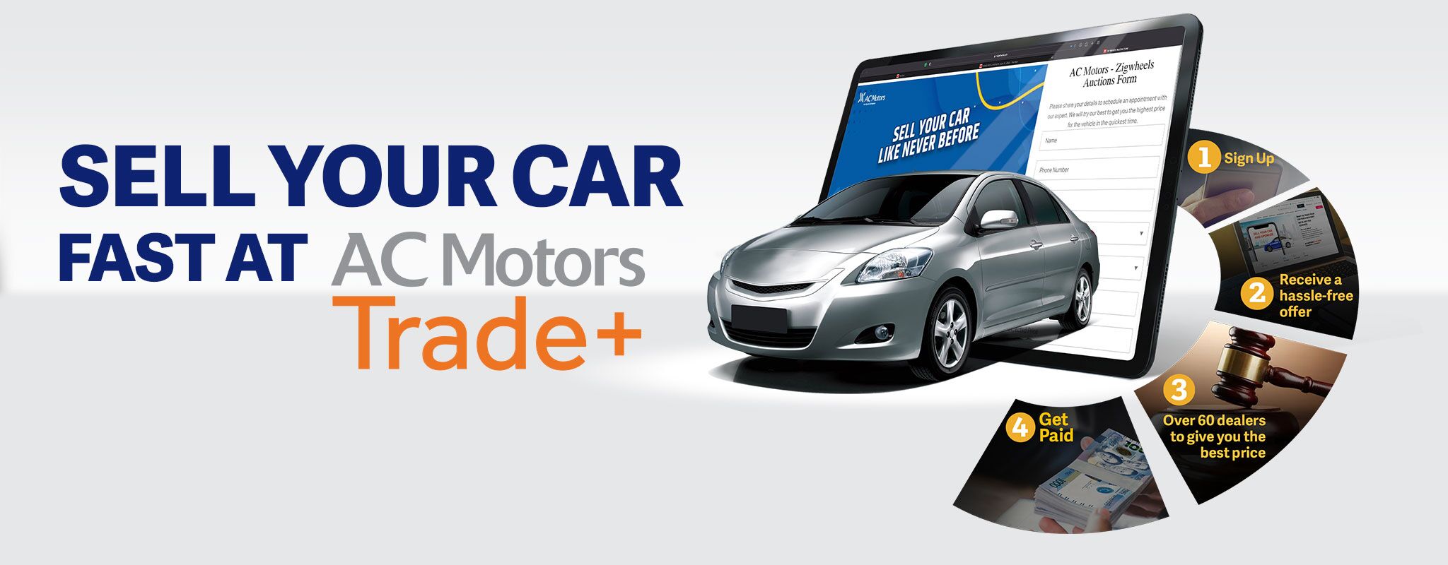 The Trade+ program is AC Motors’ used car program that allows you to easily trade in or sell your car to a network of online bidders.